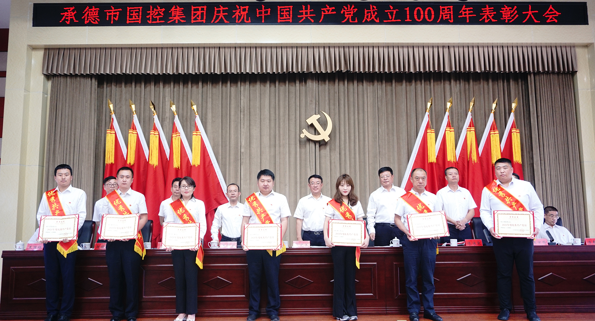 表彰大會(huì)氣氛隆重?zé)崃?,大?huì)在全場(chǎng)起立高唱國(guó)歌聲中開(kāi)幕。集團(tuán)公司黨委決定,授予許平凡等7名共產(chǎn)黨員“優(yōu)秀共產(chǎn)黨員”稱(chēng)號(hào),授予胡斌偉等3名黨務(wù)工作者“優(yōu)秀黨務(wù)工作者”稱(chēng)號(hào)?,F(xiàn)場(chǎng)向先進(jìn)個(gè)人頒發(fā)了證書(shū),并向參加“慶祝中國(guó)共產(chǎn)黨成立100周年書(shū)畫(huà)攝影大賽”獲獎(jiǎng)的人員頒發(fā)了榮譽(yù)證書(shū)。
