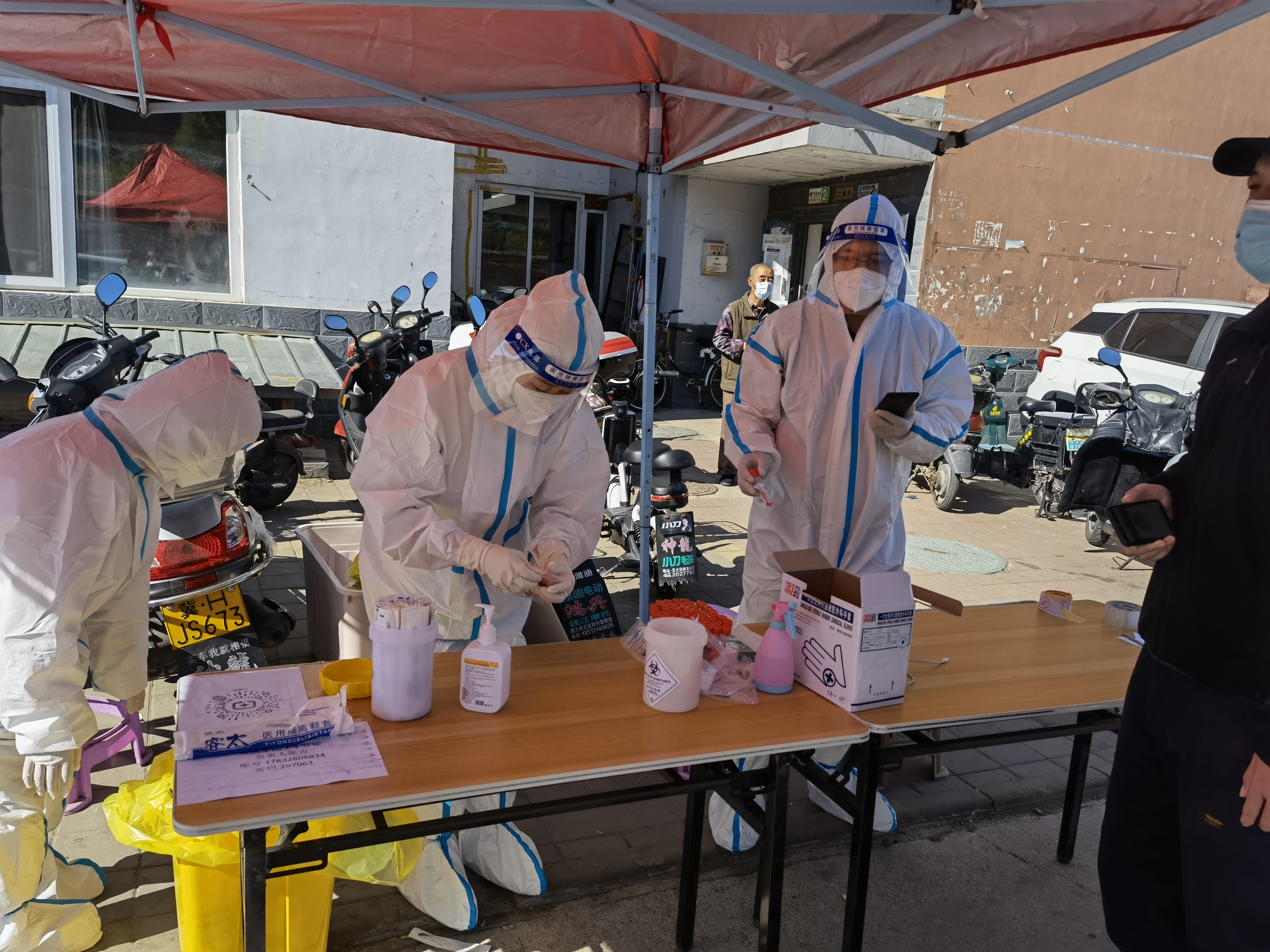 “哪里有需要,就到哪里去!”5月11日12點,得知會龍山四期及會龍山隧道工地有230余名工人尚未進(jìn)行核酸檢測后,王曉峰、焦健等同志不推脫,不抱怨,穿上了剛剛脫下的防護(hù)服,與醫(yī)務(wù)人員奔赴工地,對230余名工地工人全員進(jìn)行了核酸檢測,用實際行動展現(xiàn)國企黨員、志愿者的使命擔(dān)當(dāng)!
