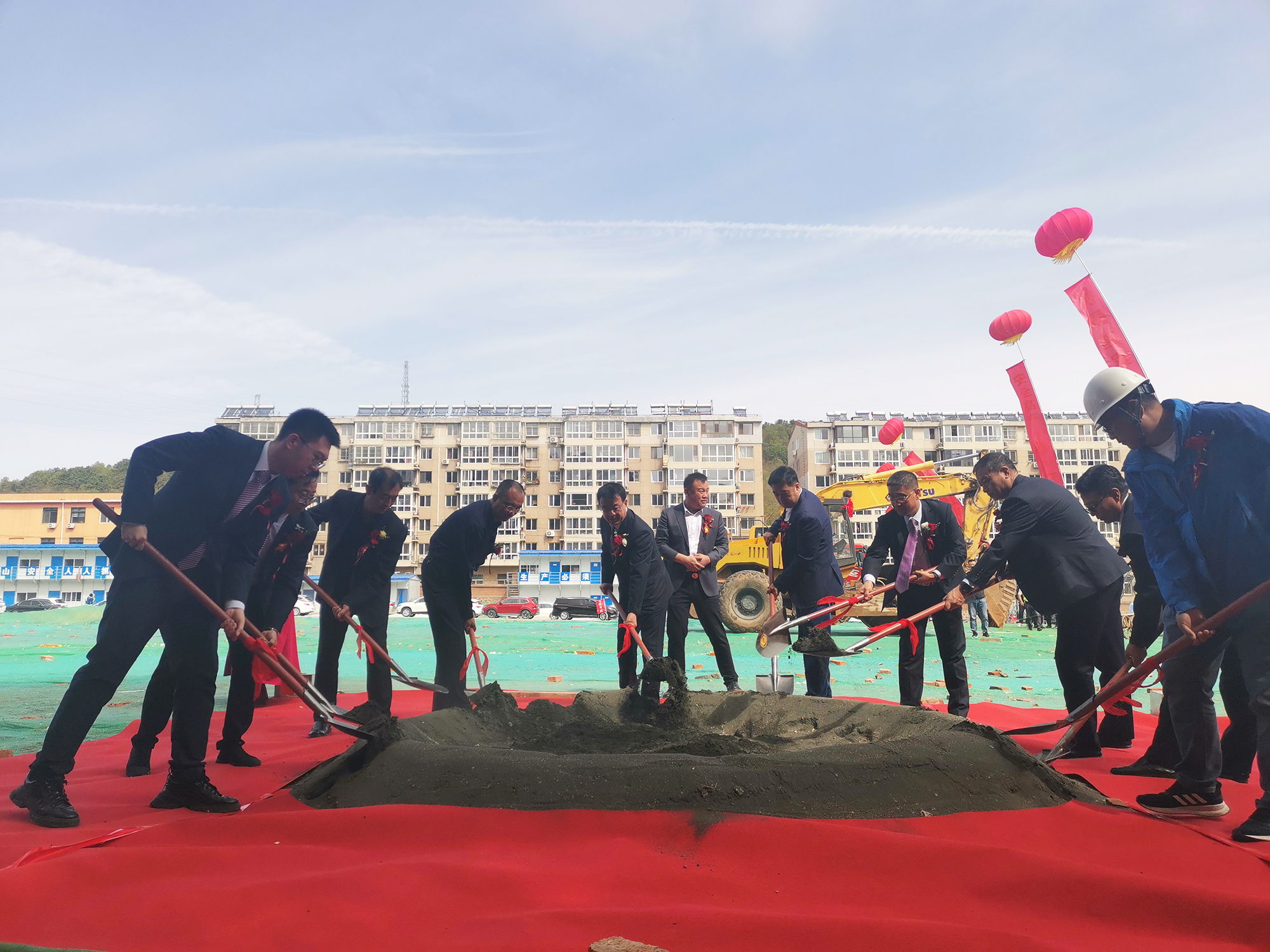 9:40分,承德國控集團黨委書記、董事長張建軍為祥獅點睛,伴著鼓聲開始舞動,送上祥瑞和祝福,祝國越家園項目開工大吉。隨后領(lǐng)導(dǎo)們共擎金鍬,揚土培基,現(xiàn)場工程器械全面開工作業(yè),儀式圓滿閉幕。